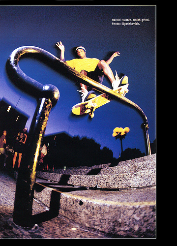 This week’s scan is a photo of Harold Hunter smith grinding a rail at Union Square. Photo was taken by Dimitry Elayashkevich.