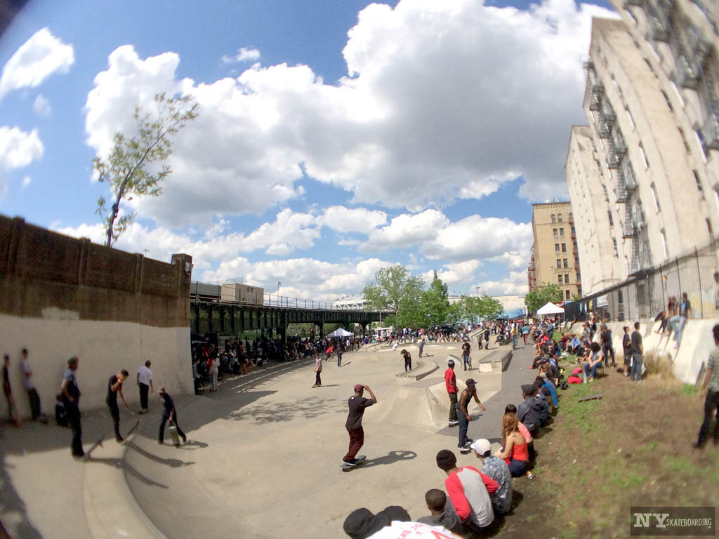 This past Saturday we headed up to River Ave skate park (157th St x River Ave) in the Bronx for the sixth annual Battle For The Bronx contest. The weather was perfect, the crowd was live and park was packed out with kids trying to take home some of the $2k cash prizes. Steve Rodriguez (5Boro) ran the event with Rodney Torres (TORRO!) managing the judging along with Rob Campbell (New Breed). Kids went hard through multiple rounds of heats until it came down to the finals where the level of skateboarding popped off. In the end Leo Heinert took first place making $1k in cash. We’ve got some photos below and our video recap will go up later today.