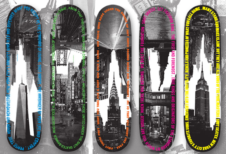 NEW YORK CITY’S FAVORITE SONS . EMERGENT INTO THE HOSTILITY . REBELS AND PIONEERS OF WHAT YOU CALL HOME . MANY STAND AND MAKE CLAIM . BUT THEY ARE ALL SONS OF THE TRUE MASTERS . SHUT SKATES