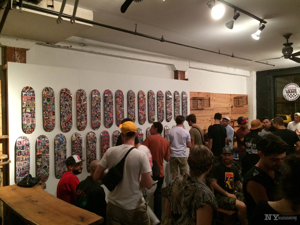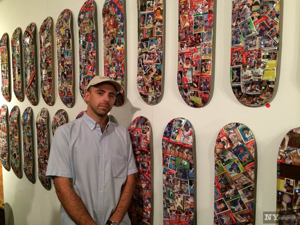 On Saturday night we headed over to 2nd Nature skate shop in Brooklyn for Lurker Lou’s Card Boards show. On display were Lou’s decks composed of all types of baseball cards and a entire wall composed of a deck for every baseball team. Big fan of Polar Seltzer, he also had a deck composed of different Polar Seltzer flavors.