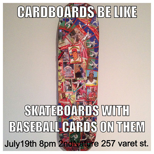 If you’re interested in purchasing a Card Board they will remain up at 2nd Nature’s skate shop in Brooklyn for the week and will run you about $200. Check some pics from the show below.