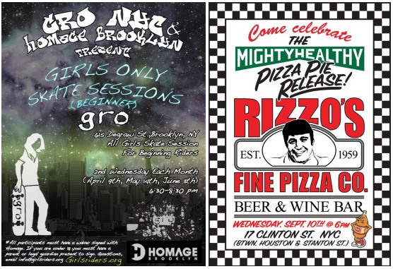 Two events this evening: starting at 6pm is the Mighty Healthy x Rizzo’s Pizza Pie Release party. Then around 6:30 is another GRO girls only session (beginners only) at the Homage TF. Check the flyers below for more details.