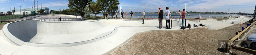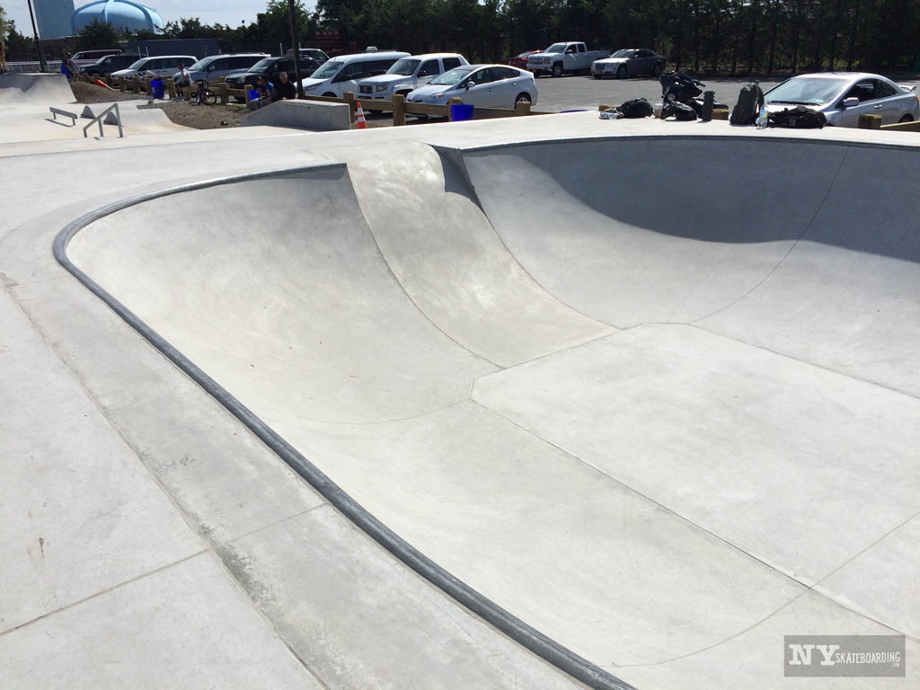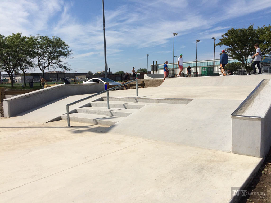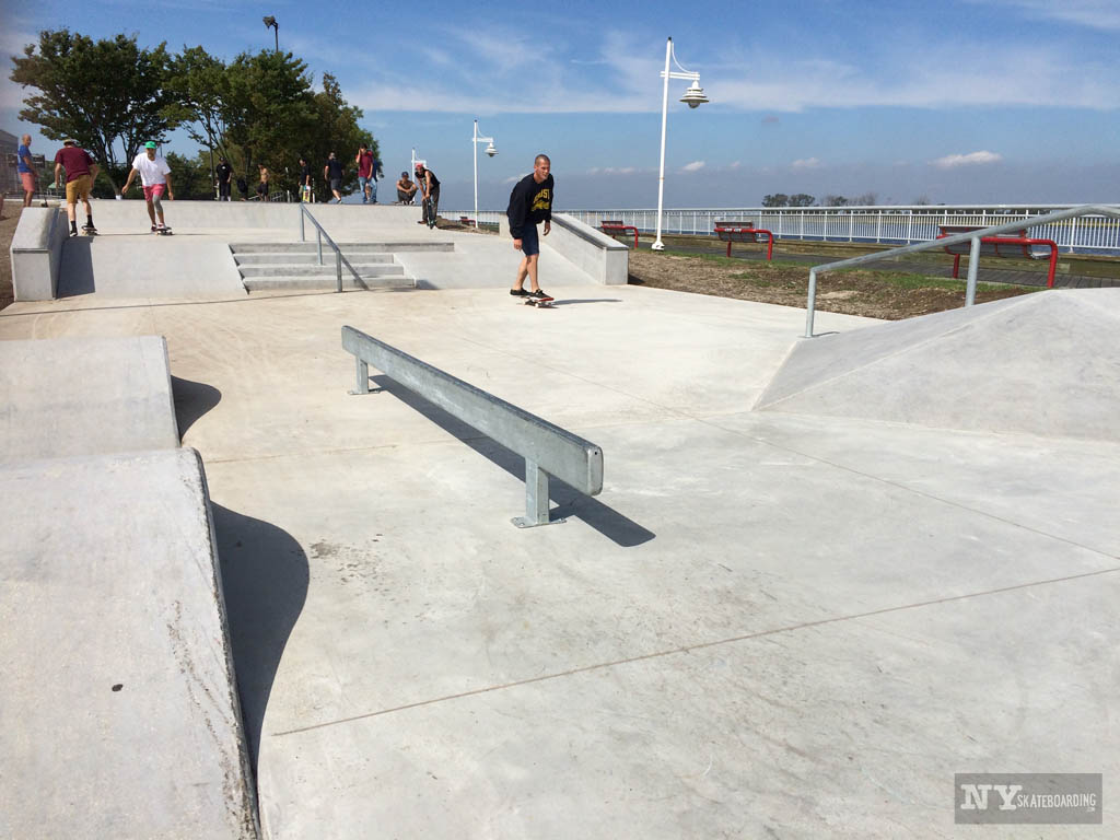 The flow of the park is similar to Far Rockaway but on a smaller scale (fast down and push hard to get back up). The bowl is fun but has an awkward flow and includes a horribly placed channel. Either way the park is a huge upgrade to what Long Beach had prior. It’s free, no pads or helmets required, very close to the LIRR and has parking right outside the gate. Pics and some video below so you can see everything for yourself.